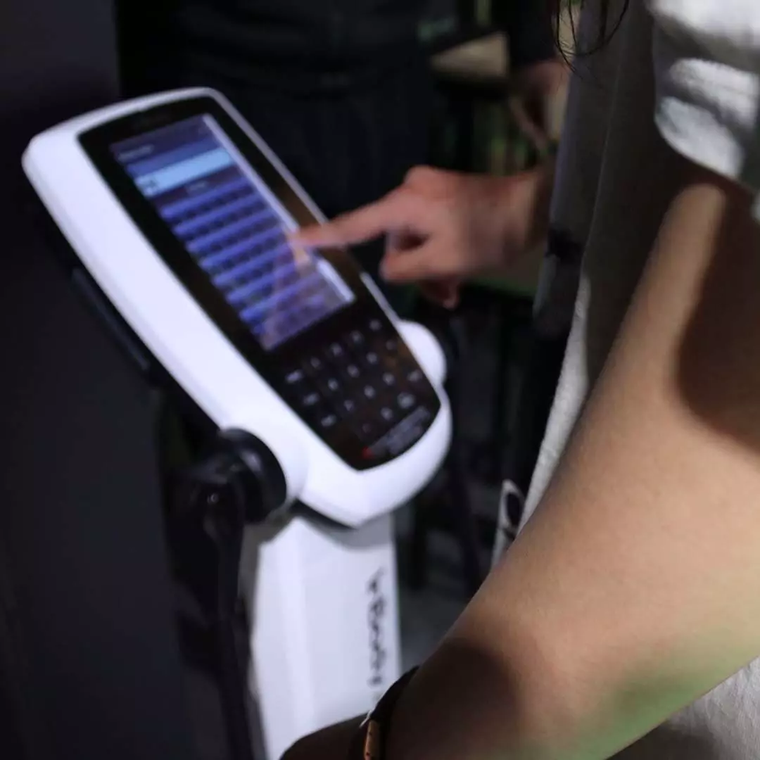 Prenez les électrodes pour commencer l’analyse de la composition corporelle.